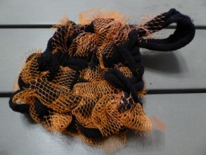 Pour avoir un tawashi à récurer, on peut insérer des morceaux de filet ayant contenu des oignons ou autre :