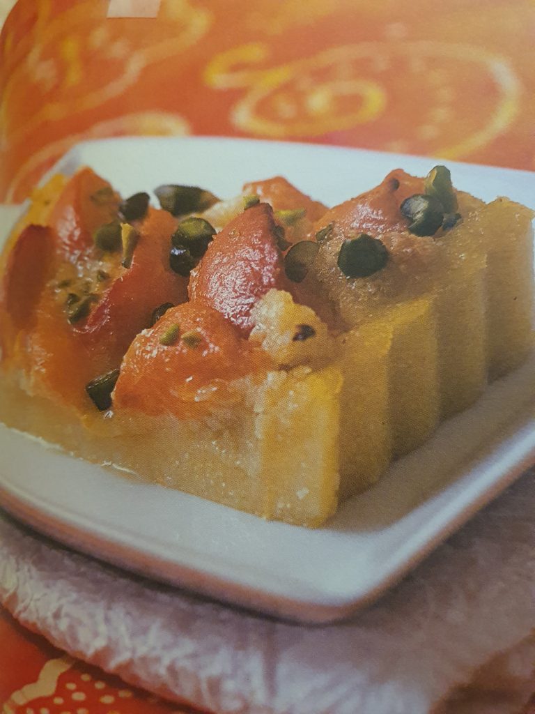 Répartissez la crème aux amandes sur la tarte. Disposez les quartiers d’abricots et saupoudrez de pistaches.